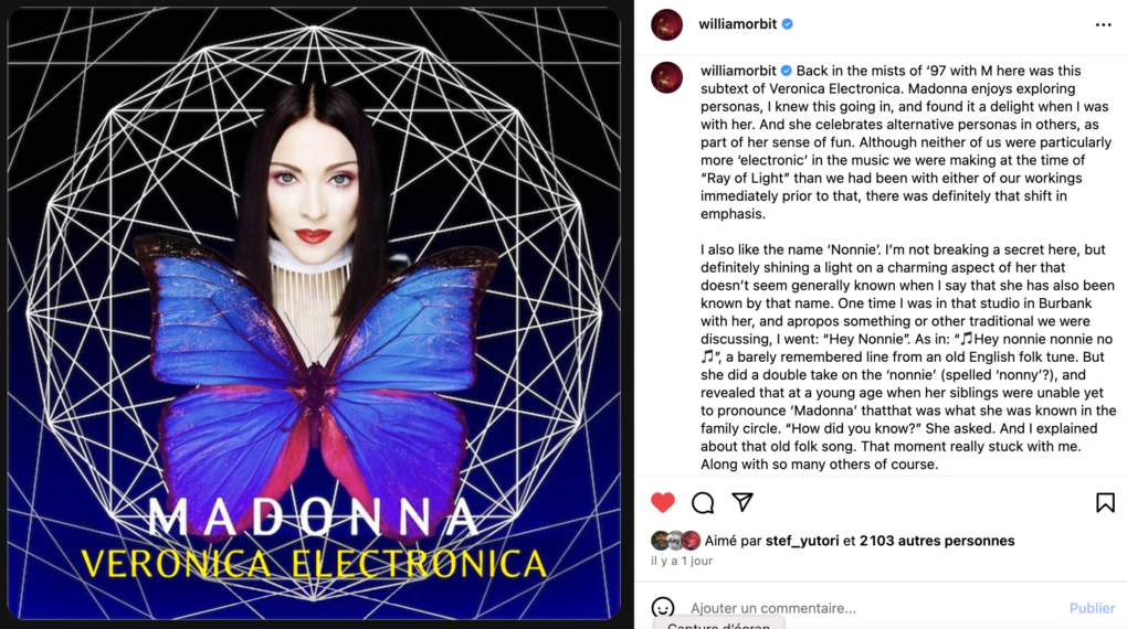 Dans une publication sur ses réseaux-sociaux, le producteur William Orbit (qui a réalisé l’album « Ray Of Light » avec Madonna), s’est dit surpris mais heureux de revoir cette période dans l’actualité :